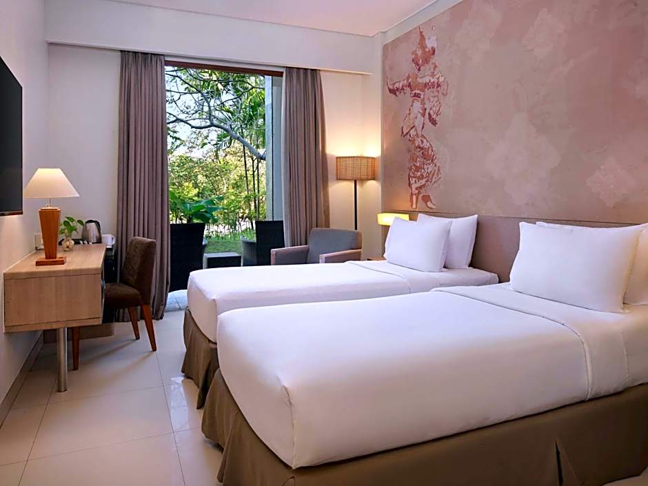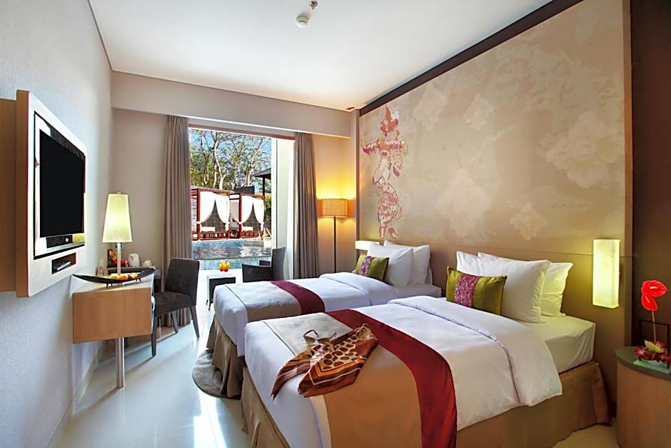 Fitted with a desk and a seating area, air-conditioned rooms are furnished with a flat-screen satellite TV, a personal safe and a mini-bar. Private bathrooms come with a hairdryer, shower facilities and free toiletries. Rooms offer a queen-size bed and views of the pool.